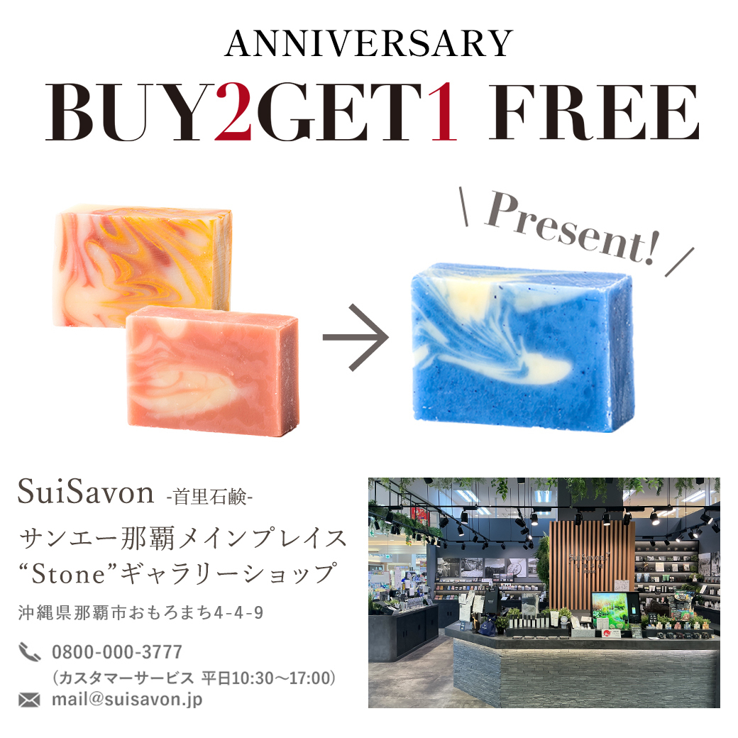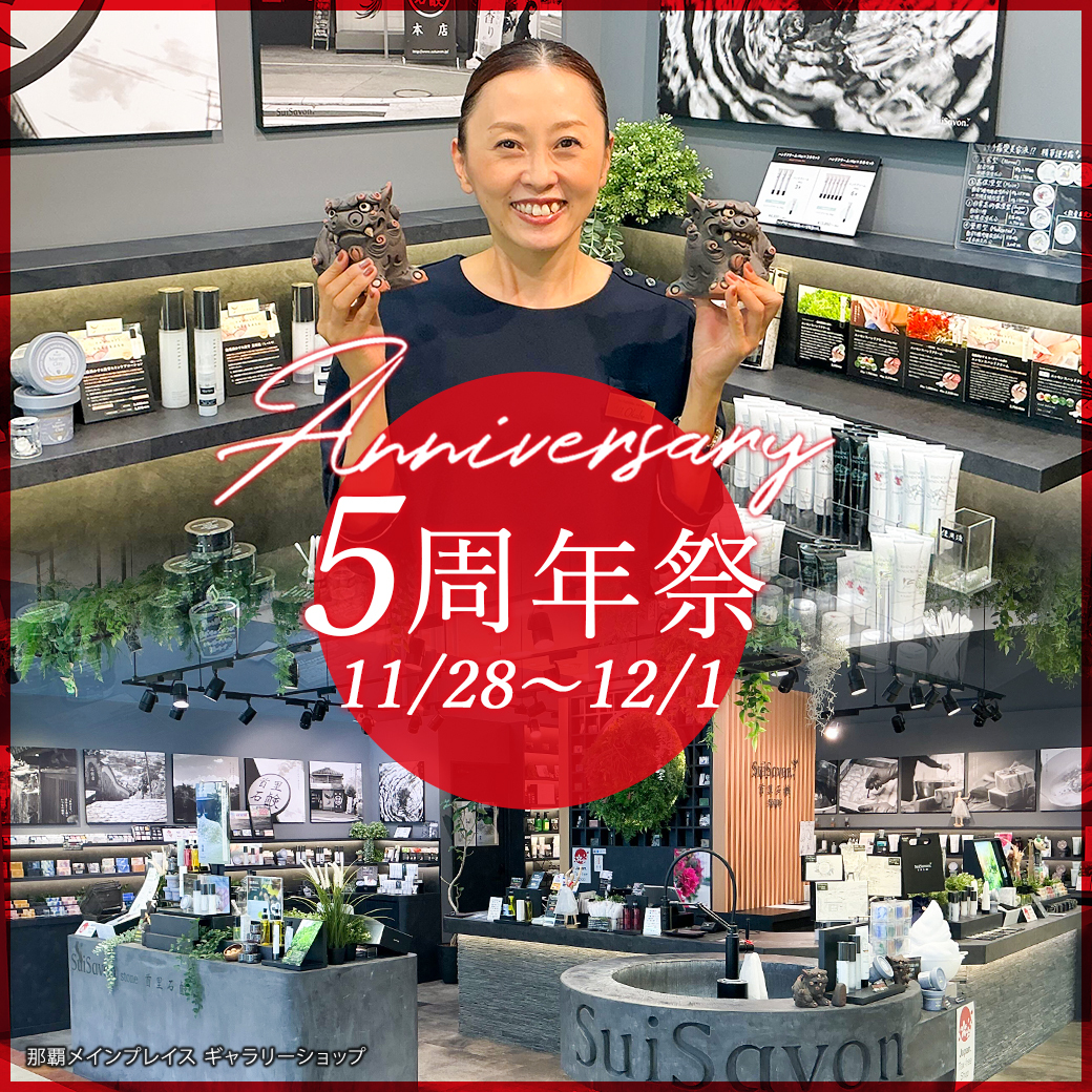 首里石鹸 那覇メインプレイス “Stone” ギャラリーショップは、みなさまにご来店いただくおかげで5周年を迎えることができました。