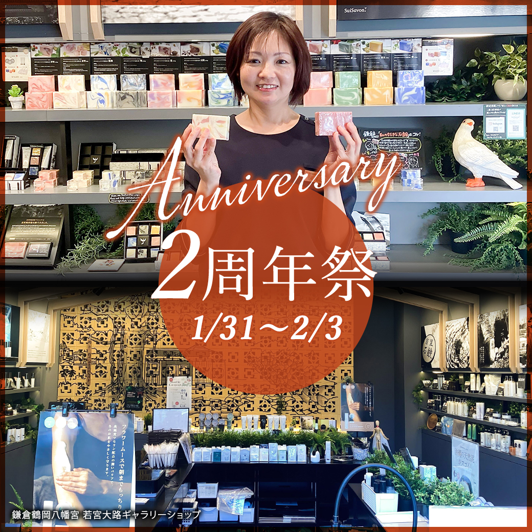 首里石鹸 鎌倉鶴岡八幡宮 若宮大路ギャラリーショップは、2周年を迎えることが出来ました。