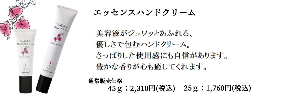 ※「エッセンスハンドクリームブーゲンビリアの香り45g」は在庫が少ないため単品販売のみとなります。