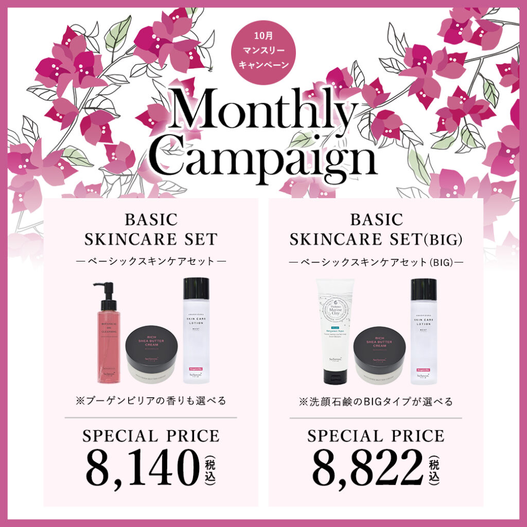 3つのカテゴリーの中からお好きな商品を1点ずつ選んで、あなただけのオリジナルセットをおつくりいただけます。今の季節に使用したいアイテムが数多くラインナップしておりますので、ぜひこの機会にお気に入りを見つけていただけますと嬉しいです♪(※BIGが選べるセットは、マリンクレイ洗顔石鹸(200g)がお選びいただけます。)
