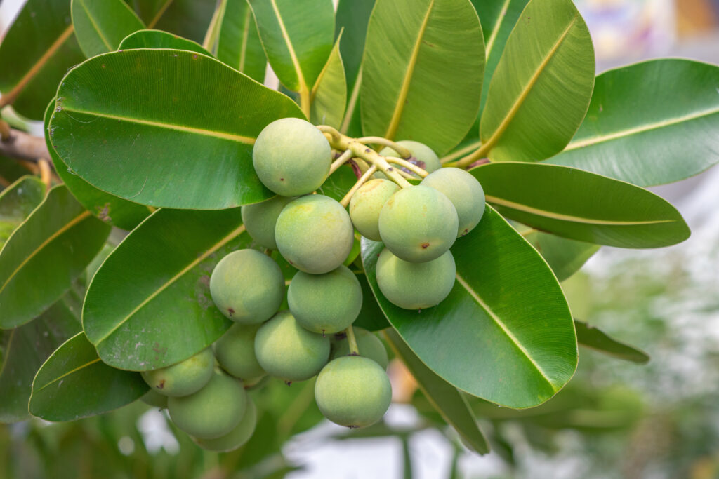 タマヌオイルはタマヌの実(種子)を圧搾して作られる天然のオイルのことです。肌荒れを防ぐ抗炎症作用や紫外線ダメージを防ぐと言われており、日差しの強い太平洋の島々では古くからお肌を保護するオイルとして使われてきました。沖縄では古来より万能薬として用いられていたり、台風の強風や海風を凌ぐ防風林「海垣(うみがき)」としての役目も果たしておりました。