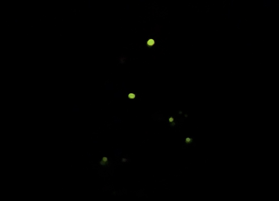 沖縄には水生ではなく、畑や草むらに住むホタルがいるのです。ビール片手に光りながらふわふわ飛んでいるホタルを見失わないように目で追っていると、、チカ、チカ、チカチカ・・・。