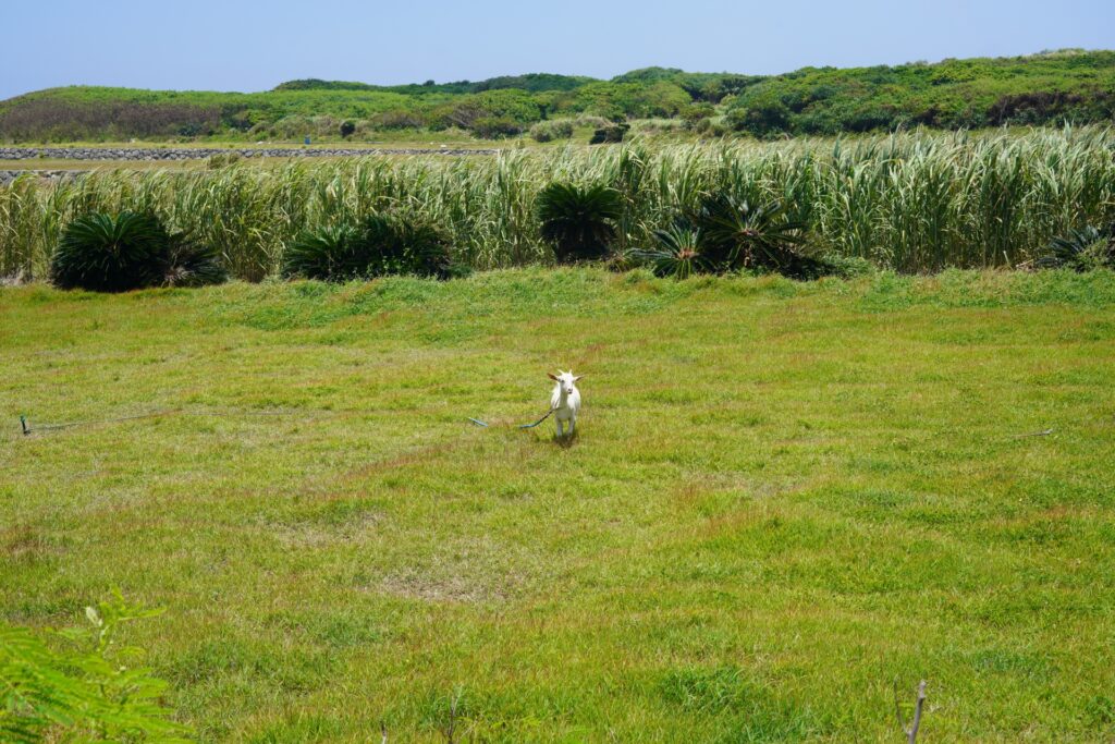 近くに来たヒージャーはわたしと祖父を一瞥した後、すぐにサトウキビにかぶりつく。