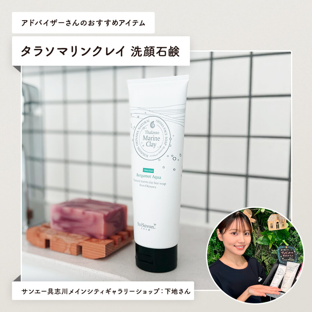 私のおすすめは《タラソマリンクレイ洗顔石鹸》。海の恵みをたっぷり含んだクレイ泡が、肌をいたわるように包み込み、洗うたびに素肌を育ててくれる洗顔石鹸です。慌ただしい毎日でも、顔を洗うほんの数分が深呼吸したくなるリラクゼーションタイムに。「洗顔って、こんなに気持ちよかったんだ」と、1日の区切りをやさしくつけてくれる存在です。
