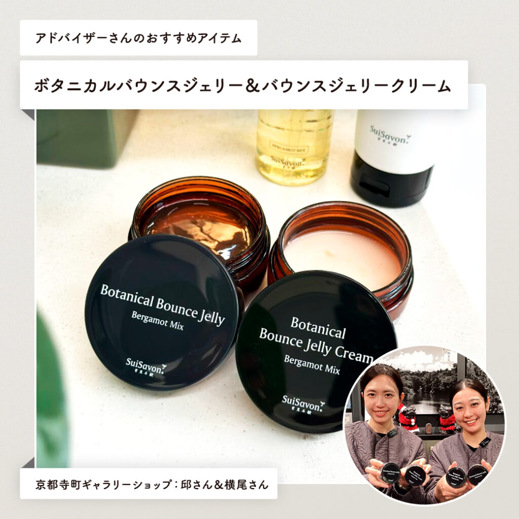 私たちのおすすめは《ボタニカルバウンスジェリー&バウンスジェリークリーム》。天然アラビアゴム配合で、深いシワにアプローチし、押し返すようなハリ感のある肌へ導いてくれます。かき混ぜても元に戻る“形状復元”のジェルとクリームは、肌にのせると凹凸をなめらかに整えてくれる頼もしい存在。「今日はちゃんと肌が応えてくれる」そんな実感が、朝のメイク時間を少し前向きにしてくれます。