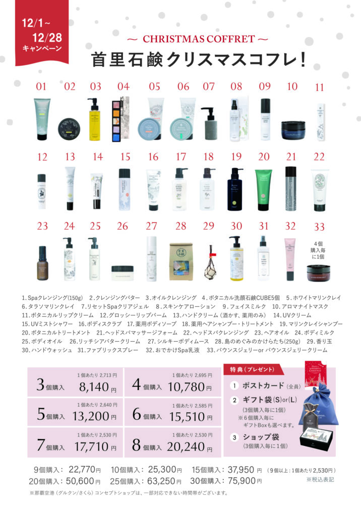 - クリスマスコフレ販売期間:2025年12月1日 (月)~12月28日(日)まで