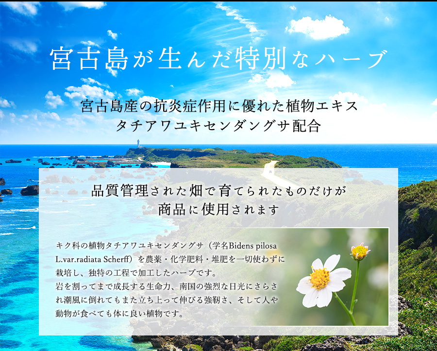肌を柔らかく整える、「宮古島産のハーブ」エキス
