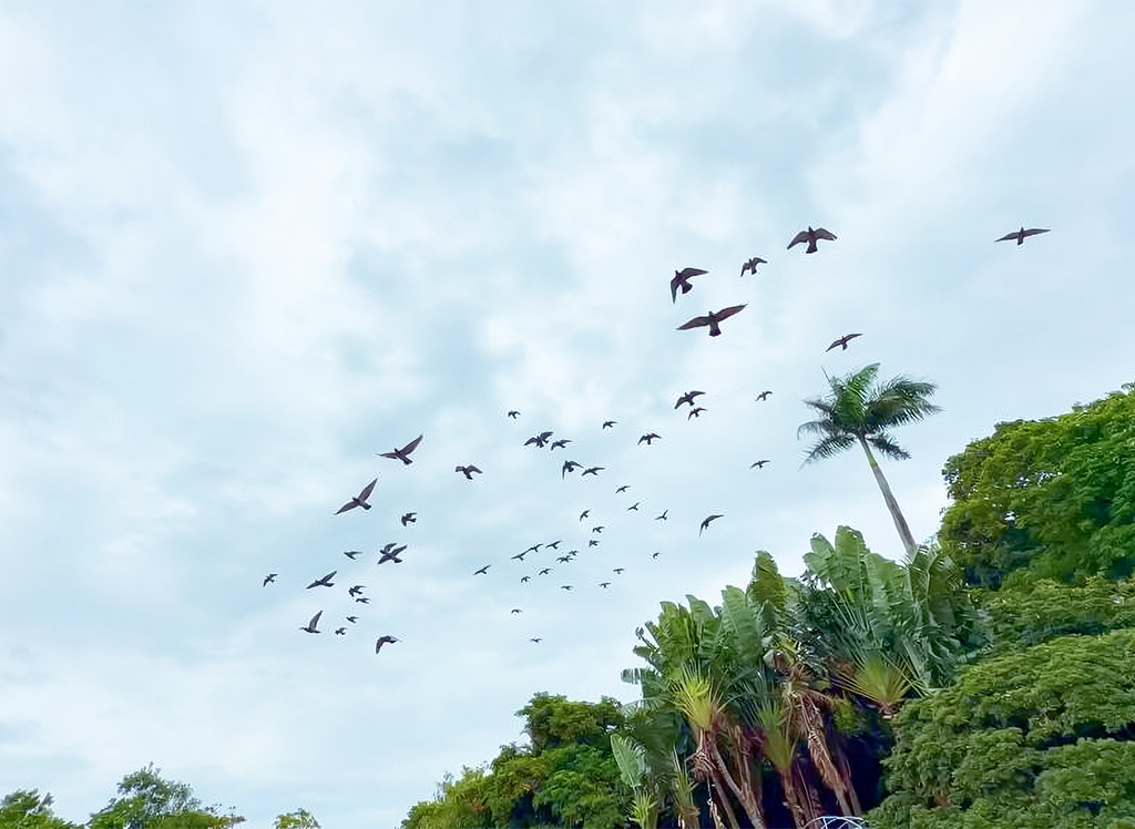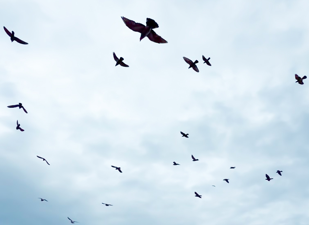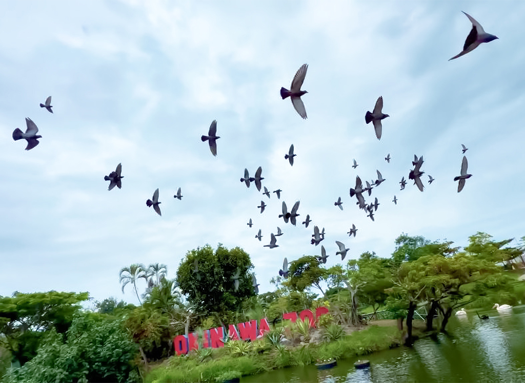 つい先ほど飛んで行った米軍機の記憶も薄れるほど、飛翔する鳩が抑揚をつけて間近から空いっぱいに行き来する様子が圧巻で、二人で顔を見合わせて、何度も拍手を送り合った!