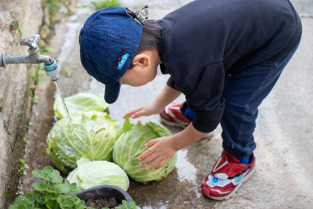 その後も好みのキャベツを3玉ほど選び、狩り、水で汚れを洗い流す。