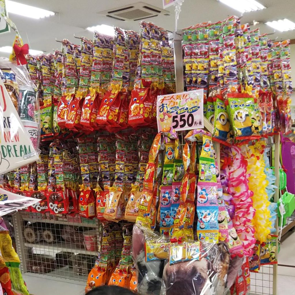 2月のショッピングモールにずらりと並んでいたのは、さまざまなお菓子が連なる首飾り(レイ)だ。