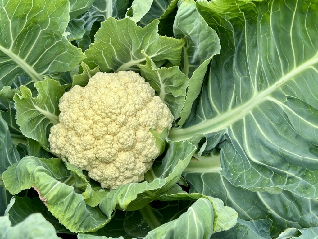 そして、大きな葉について尋ねた方からは、目の前でびっくりするほどの大きなカリフラワーを収穫し、