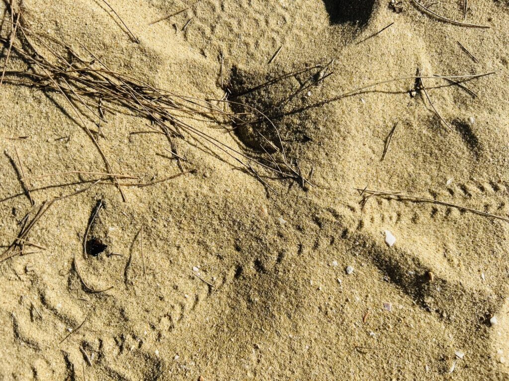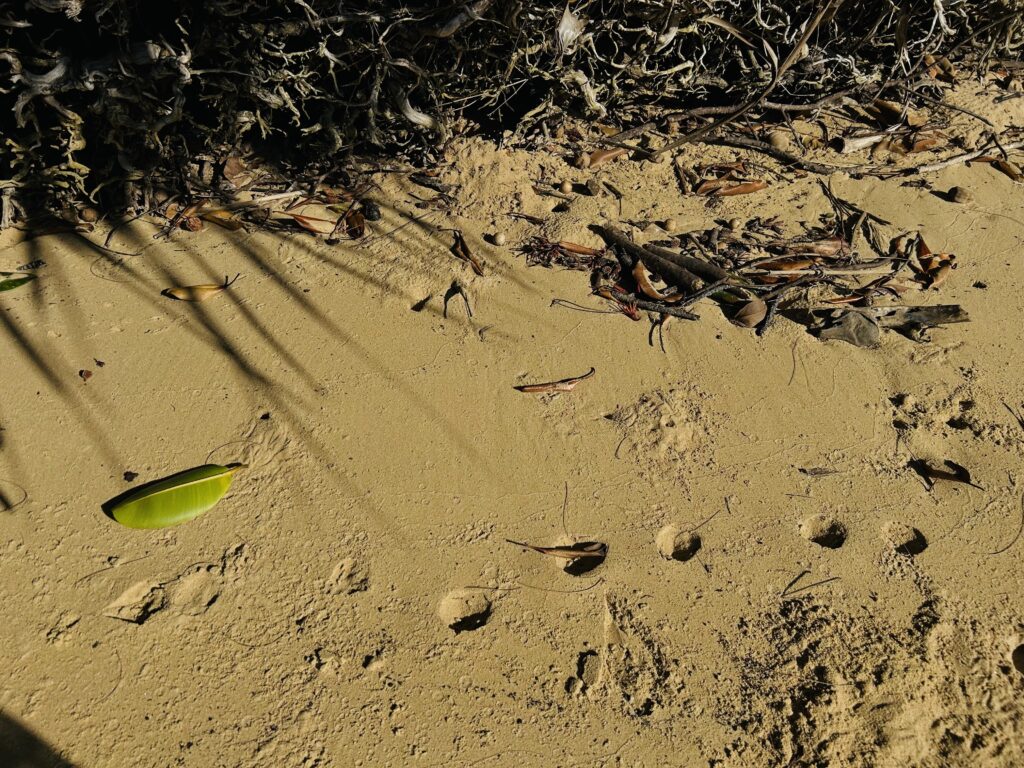 カニがどう歩いたらこの足跡になるんだろう?想像しながら通り過ぎた。