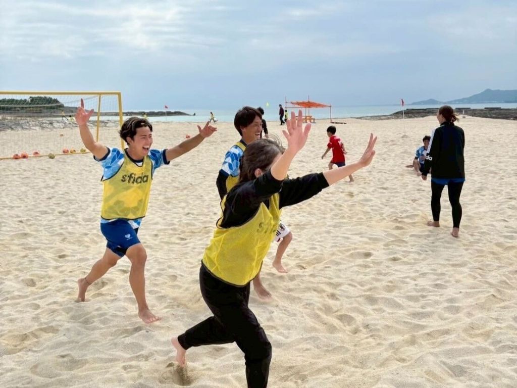 首里石鹸では、メインパートナーとして「ソーマプライア沖縄」のスポンサーをさせていただいております。その「ソーマプライア沖縄」のコーチが、初心者でも楽しめるスクールを開催してくださっており、内容はフットサルだったり、ビーチサッカーだったり♪