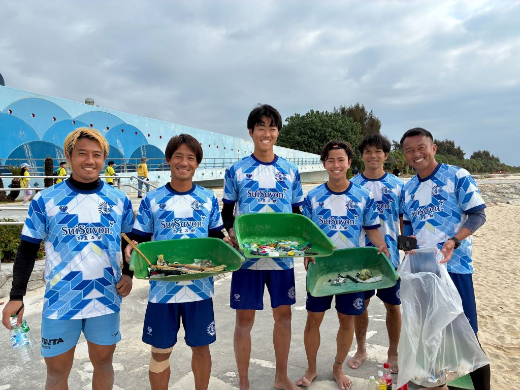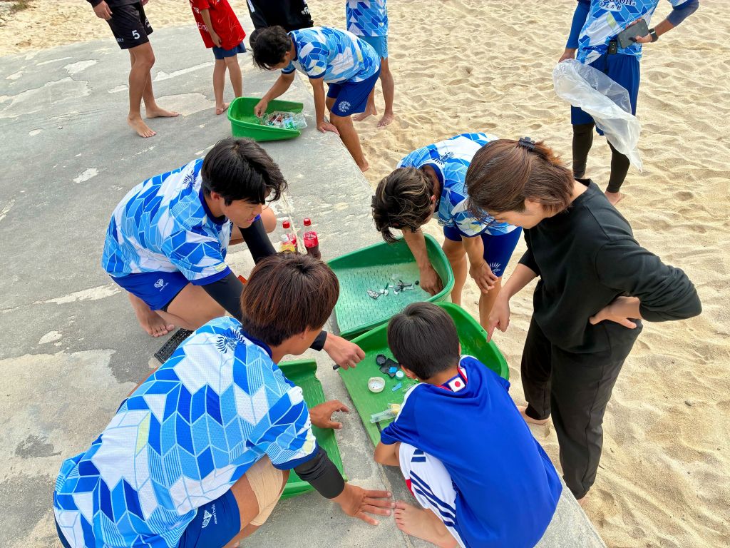 今月はビーチサッカーで、まずは会場となるビーチを綺麗にお掃除する「ビーチクリーン活動」から!